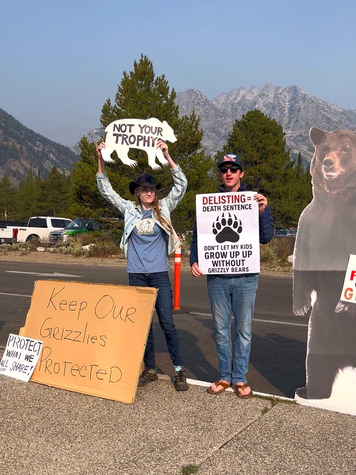 People gathered peacefully at the designated First Amendment site to stand for continued grizzly recovery and to oppose premature delisting. Signs were created, postcards to congress were written by members of the public, and many demonstrated the deep public support for protecting grizzlies in the Greater Yellowstone Ecosystem.