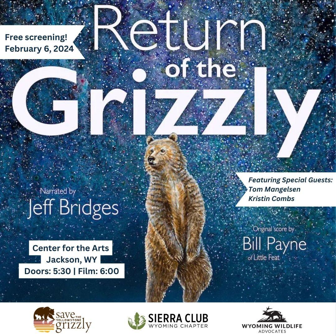 DON’T MISS THIS OPPORTUNITY TO SEE ONE OF THE BEST WILDLIFE FILMS OF THE YEAR! Thursday, February 6 at 6:00pm Doors open at 5:30 Center for the Arts in Jackson, Wyoming Sierra Club Wyoming Chapter, Save the Yellowstone Grizzly and Wyoming Wildlife Advocates are proud to present a free screening of the new film “Return of the Grizzly” on […]